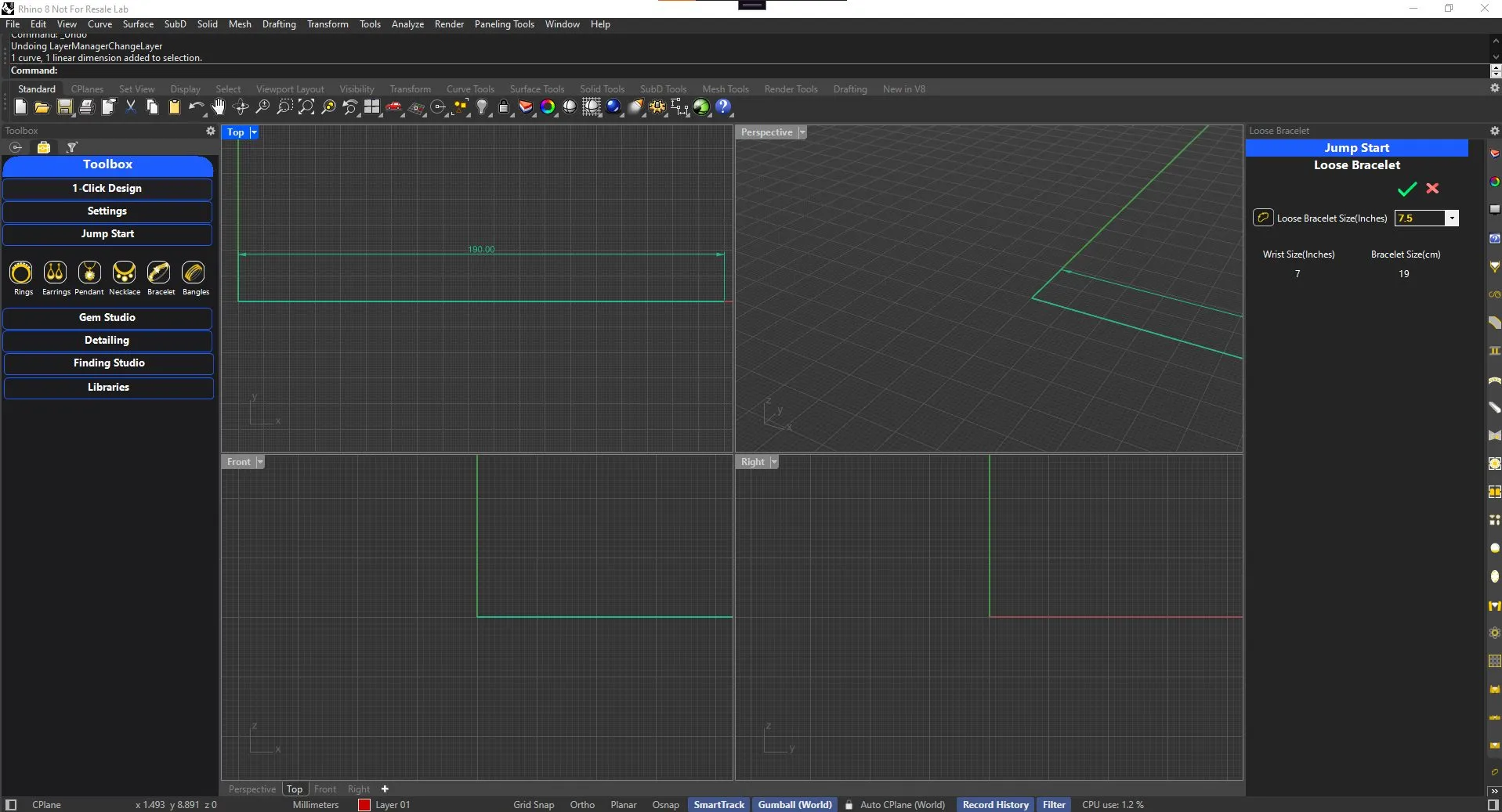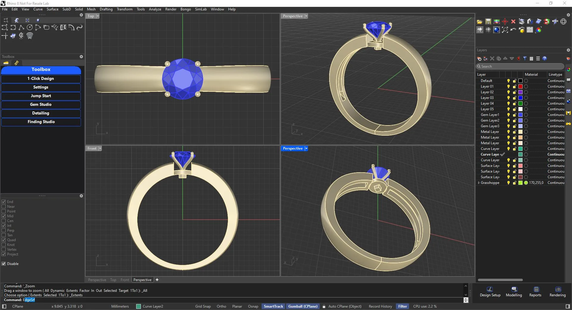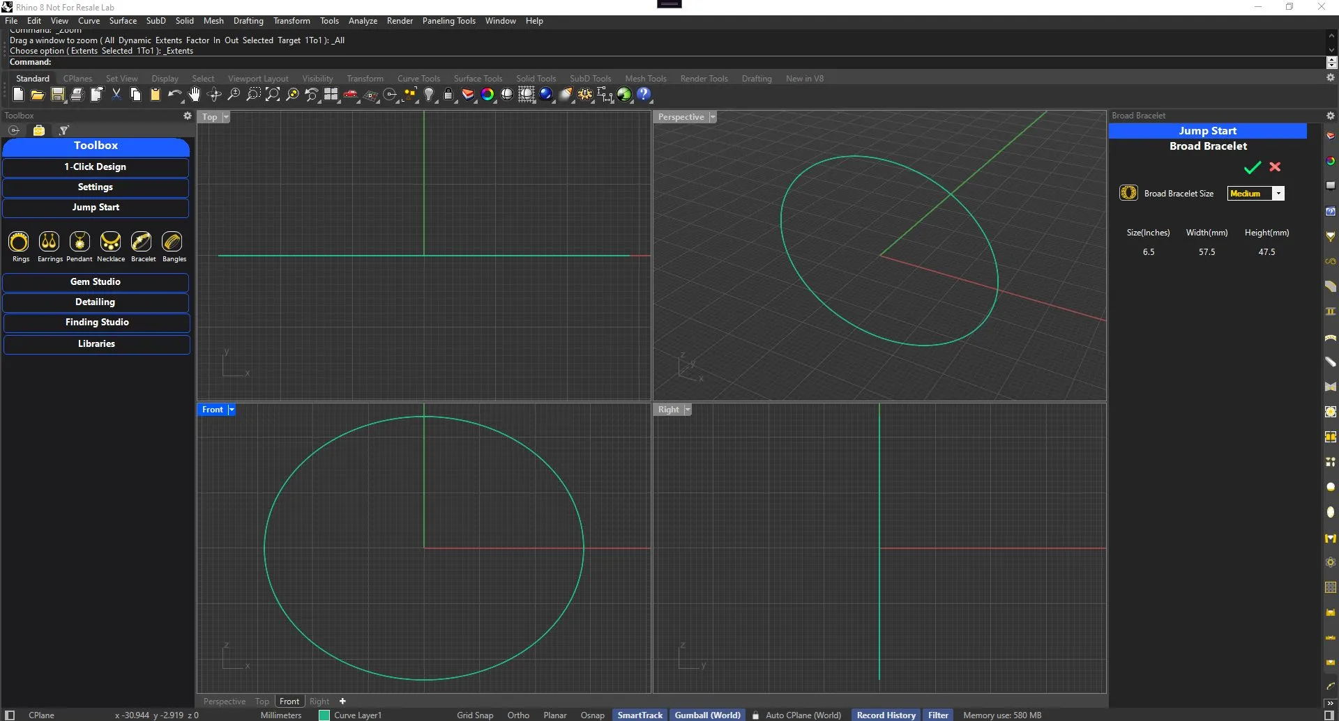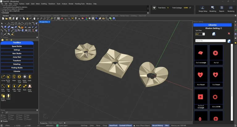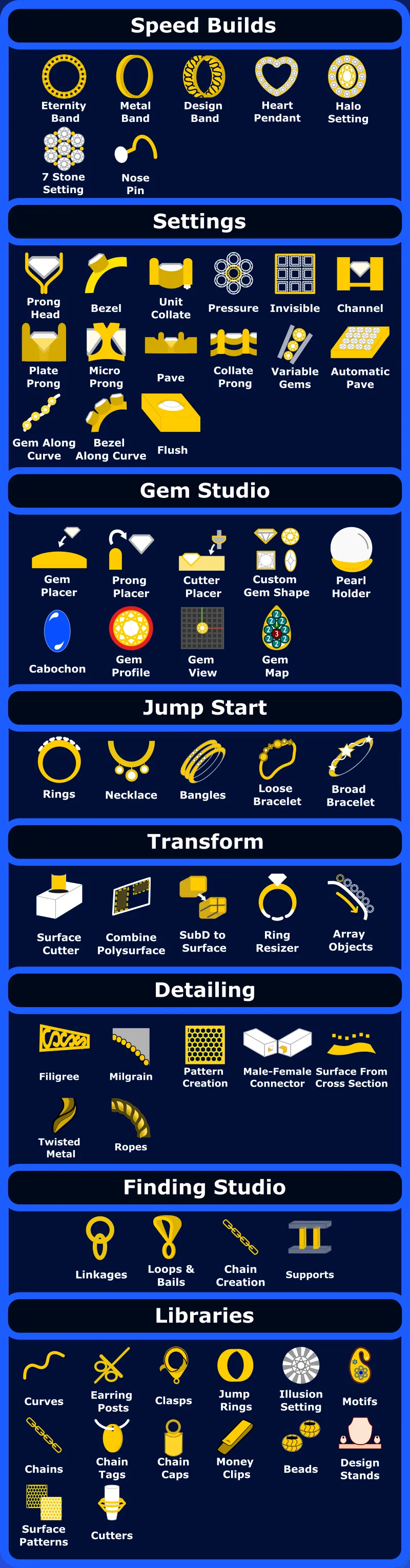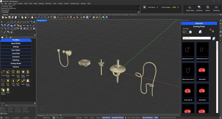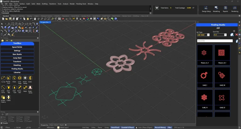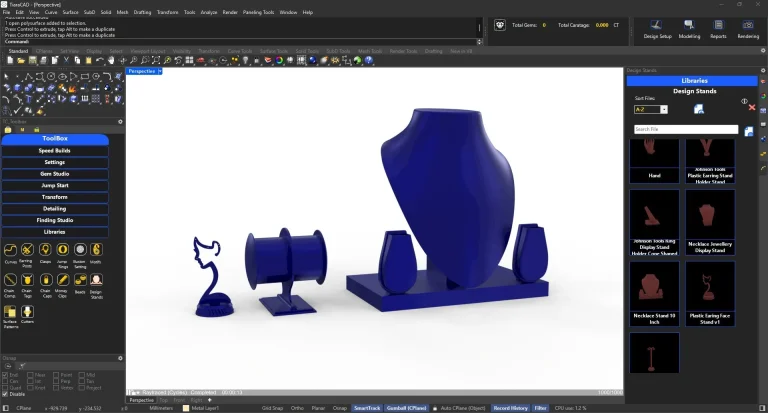 Gem view allows you to choose a gem and it is placed in the center with the Construction Plane aligned to the gem.