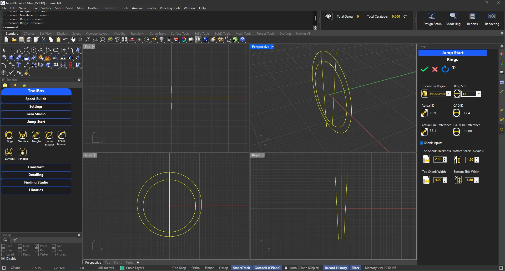 Adjust Gem Proportions, Prong, & Seat Settings to obtain your desired Prong Head.