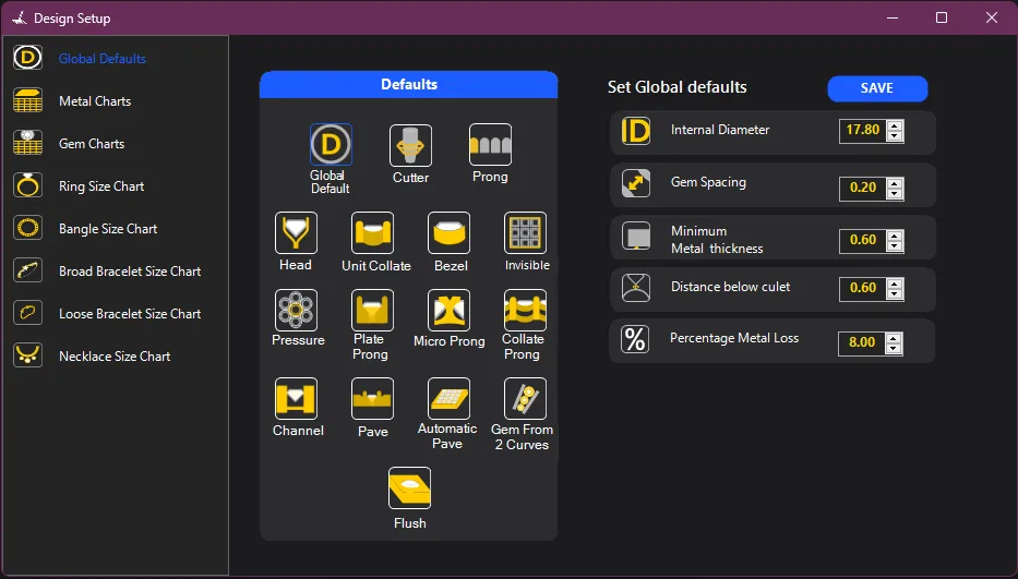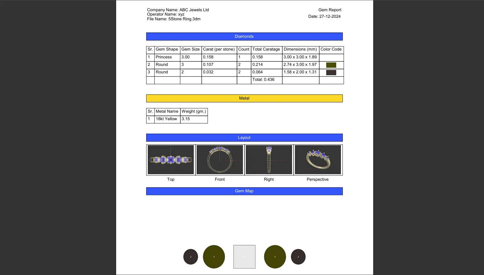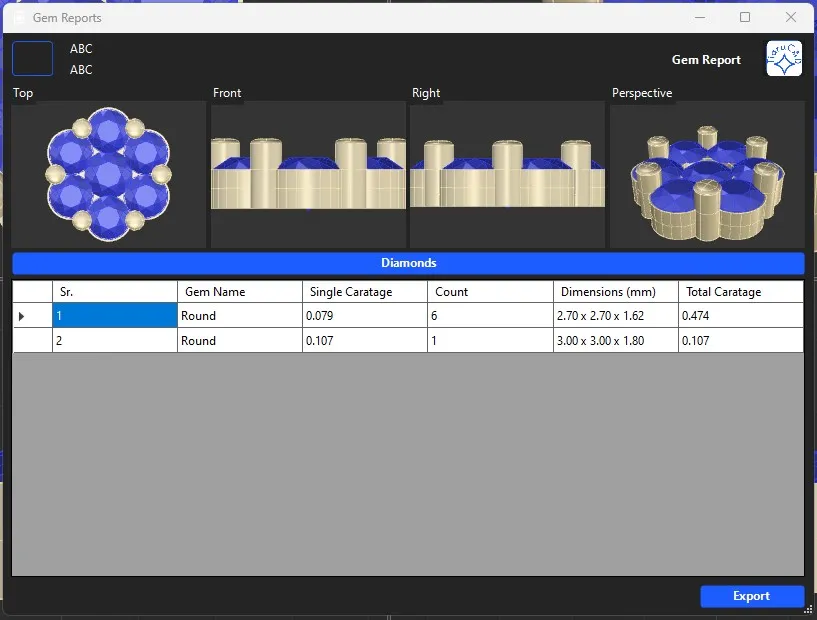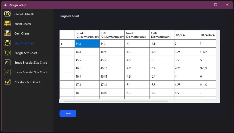 You can import your company based gem chart per cut and carat. This ensures all gems created in the design follow only these sizes unless specified otherwise.