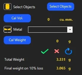 - Users can now calculate the metal weight of the entire CAD design by selecting the objects and picking their choice of metal