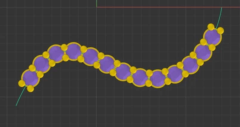 Gems along curve now setting from the centre