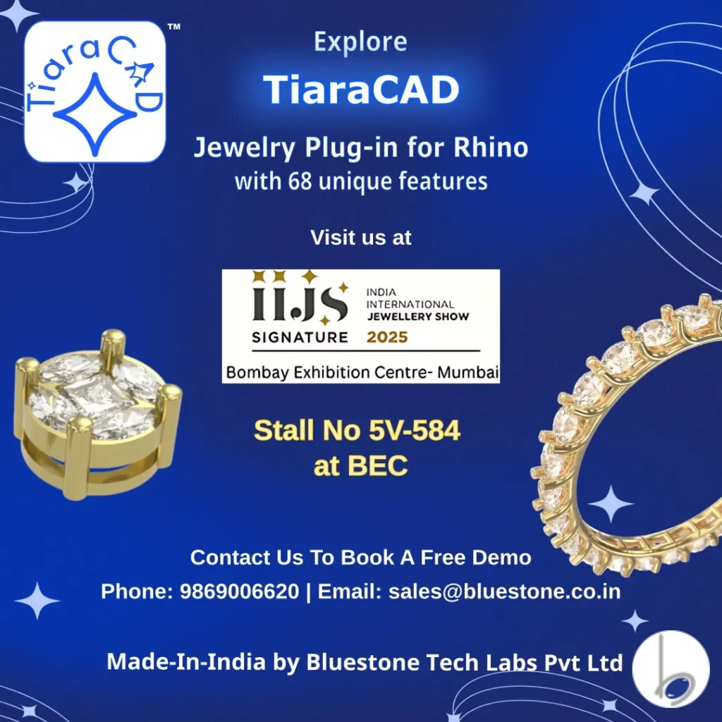 We’re thrilled to announce that TiaraCAD will be showcasing at IIJS Signature 2025! 🎉 Visit us at Stall No. 5V-584 at the Bombay Exhibition Centre (BEC) to explore TiaraCAD’s cutting-edge jewelry design software and its 68 distinguishing features that redefine creativity and efficiency.